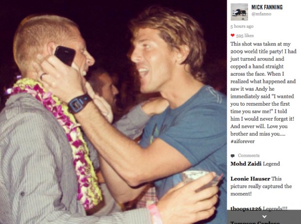 1) Not only did Mick just win a world title, but one of his closest mates quoted Bette Middler from the seminal scene in the cult surf movie The Wind Beneath My Wings! Now life can’t get any better than that!