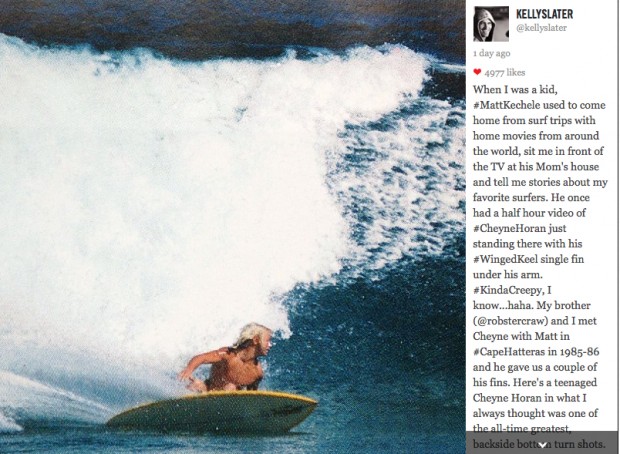 7) Kelly Slater delves into his past, getting quite weird, but doffing his bald dome to Cheyne Horan and what remains a thoroughly now bottom turn.