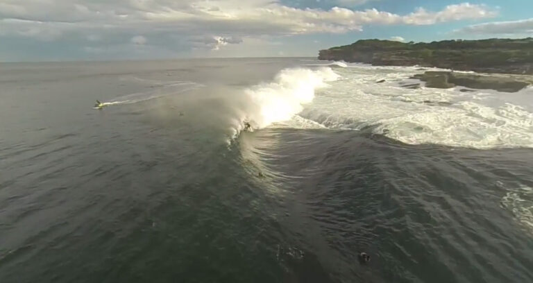 Braboy Mark Mathews representing the virtues of paddle surfing with this late drop and classic shared barrel at Shipsterns.