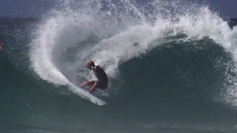 The Beschen family's 13-year-old surfing prodigy in Micronesia, on the Goldie and at his home on the North Shore.