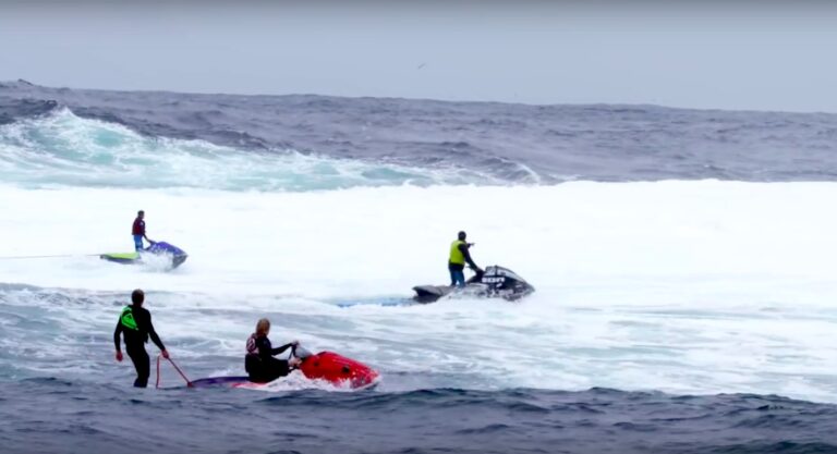 3-time world champ paddles a jet ski into point break perfection at Shipstern Bluff, braves sharks, has the funnest day ever!