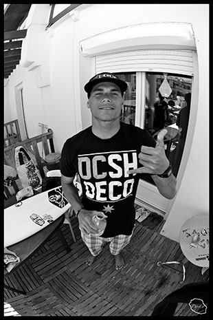While you might not be familiar with Tereva, it’s possible his name rings a bell. In 2011 he placed 3rd in the Teahupoo Billabong trials and this year had a promising result at the Protest Vendée air show. Contest results aside, Tereva’s family name should evoke strong surfing heritage. His uncle Poto David was a former World Tour surfer and in fact the first ever Tahitian to qualify. Today Tereva follows his uncle’s council closely, “If you want to find the best sponsors, it’s imperative you leave Tahiti”. So after working hard on his fitness and sharing his uncle’s taste for big surf, the young Tahitian left the island and came to live in mainland France.