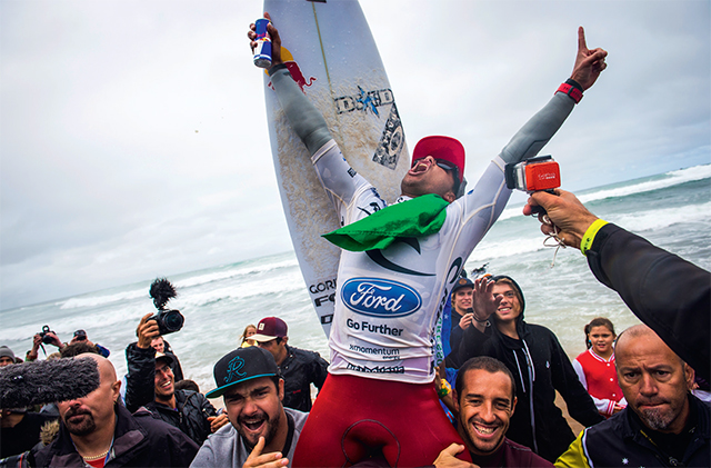 It’s as close to a Rocky Balboa story as you’ll get in surfing. But in the gentleman’s club that is the modern day World Tour his passion and commitment hasn’t gone down well. “When I saw what the guys were saying about Adriano I was like, ‘oh I’m not gonna do that.’ you know, cause, they’re always talking about it and I don’t want that. I stay away from it,” says fellow World Tour surfer Filipe Toledo. This year Adriano is well and truly in the hunt for the title, but don’t expect him to turn the passion nozzle off. “I came from nothing, no hope, no planning, no money. Today I am one of the top five in the world. My passion comes from that eight year old boy who dreamed of competing, meeting Kelly Slater, being in magazines. I try to show the world how much I’ve fought to be where I am today, I hope they can understand my journey and see how much this means to me.” – JS