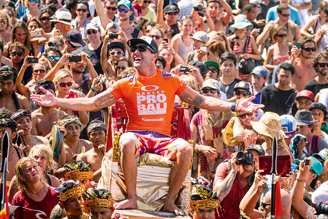 The reigning ASP World Champ basks in his win at the Oakley Pro Bali 2013. Photo: Joli