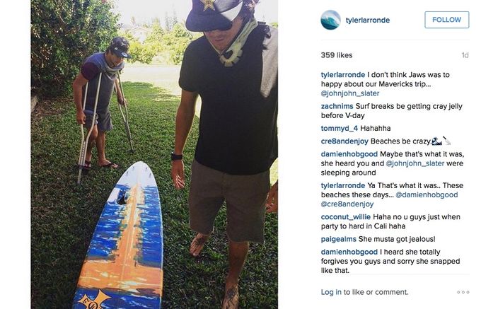 “Thankful I made it home with just a supper bruised and swollen leg after a 20ft wave landed on me and my leg went through my board. Going to the hospital to get it checked out. @skullbase_everything I love you guys! Thanks so much for pulling me out of that situation. @kurtischongkee @dklegend @shaunwalsh20 @hanu_mane @nano_messera @kolomona1_ ???? love you guys!!”
