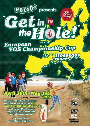 Volcom Stone will host its 6th Annual European VQS Championship Cup « Get In The Hole » on Tuesday, April 30 and Wednesday, May 1st 2013 in Hossegor, France. The invite only tournament will see the qualified surfers from each European VQS compete for 7000€ prize money, and the winner of the Pro-Am division receives an invite to the VQS World Championships in Fiji (during the Volcom Fiji Pro, June 2013). An addition of 500€ will to the Electric best pu(nt) of the cup.