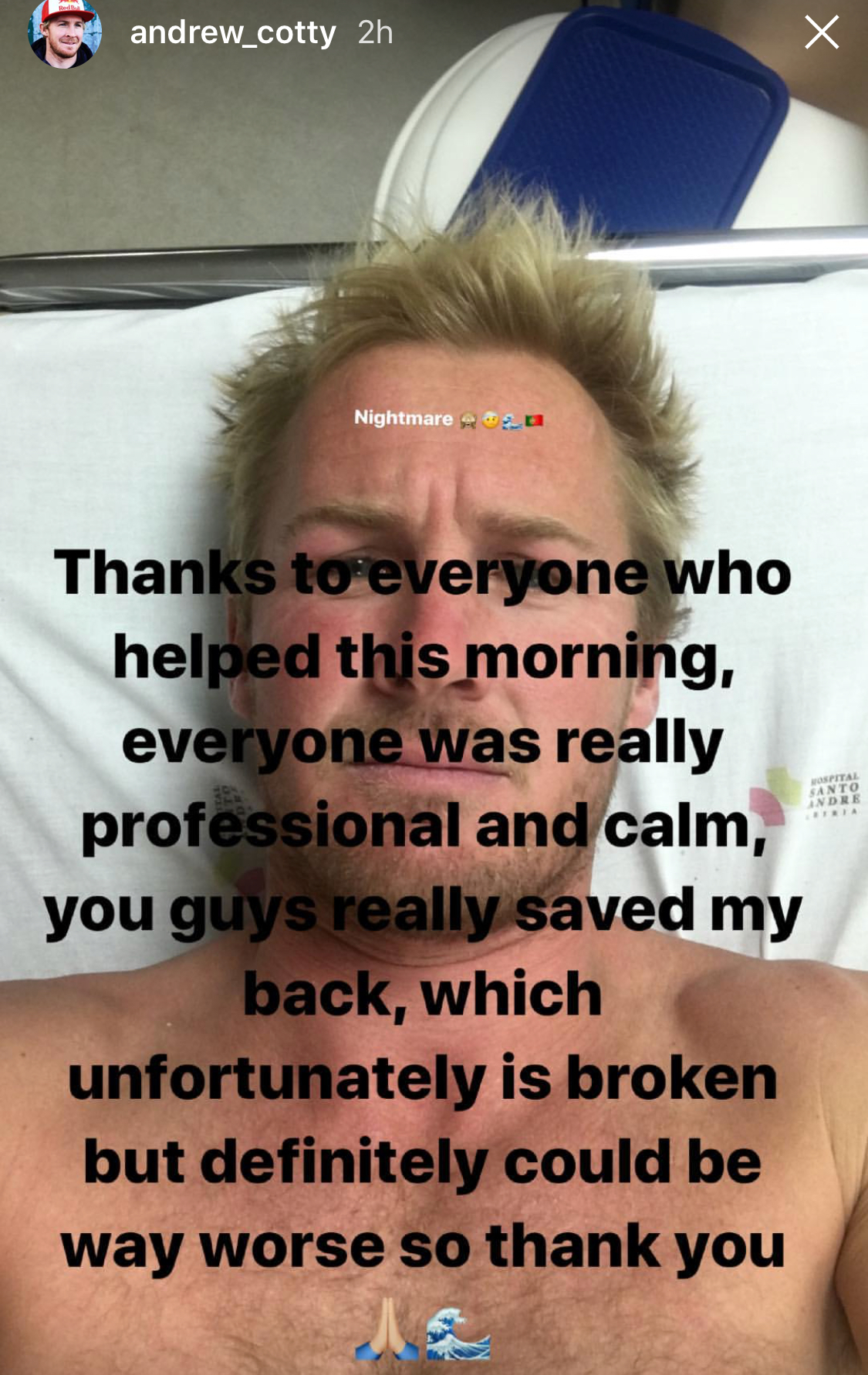 Andrew Cotton just took one of the nastiest wipeouts ever at Nazaré today. Realising he’s gonna get rumbled by the lip, you can see him try and pull up to get inside it before it lands.