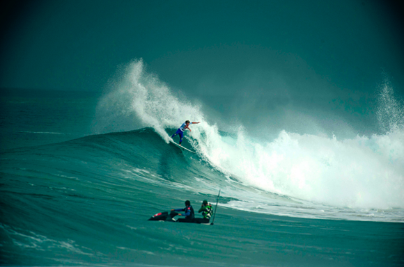 Hawaii’s D Payne on his way to losing yesterday morn, before the devil wind raped the lineup. Foto: Timo